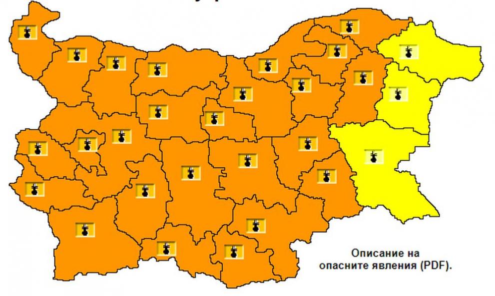 В първият ден на август е обявен оранжев код в станата за горещини. Само в три области – Бургас, Варна и Добрич има предупредителен жълт код за жеги.